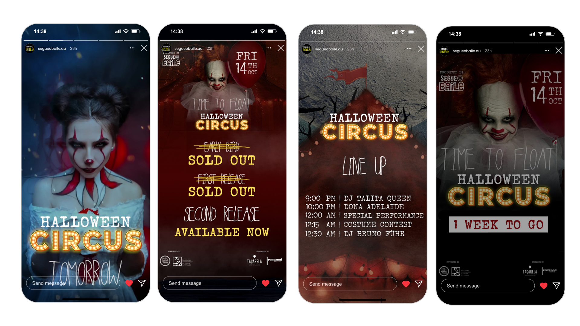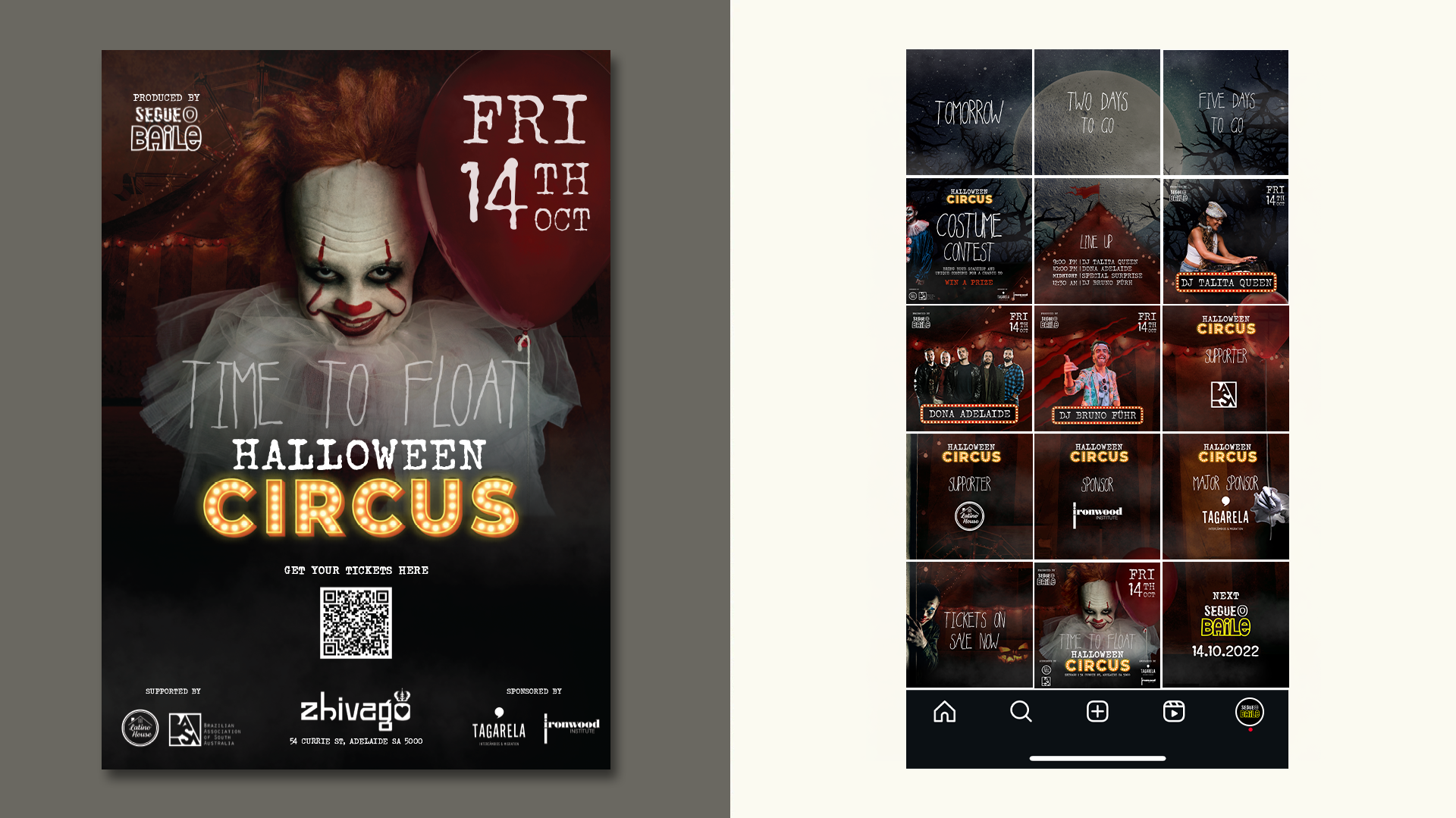 I was responsible for designing the full event identity — from the Halloween Circus logo and theme to the creative assets and venue decoration. My work ensured that every touchpoint, from posters and social media to on-site visuals, carried a cohesive and immersive aesthetic that captured the eerie, playful energy of the night.