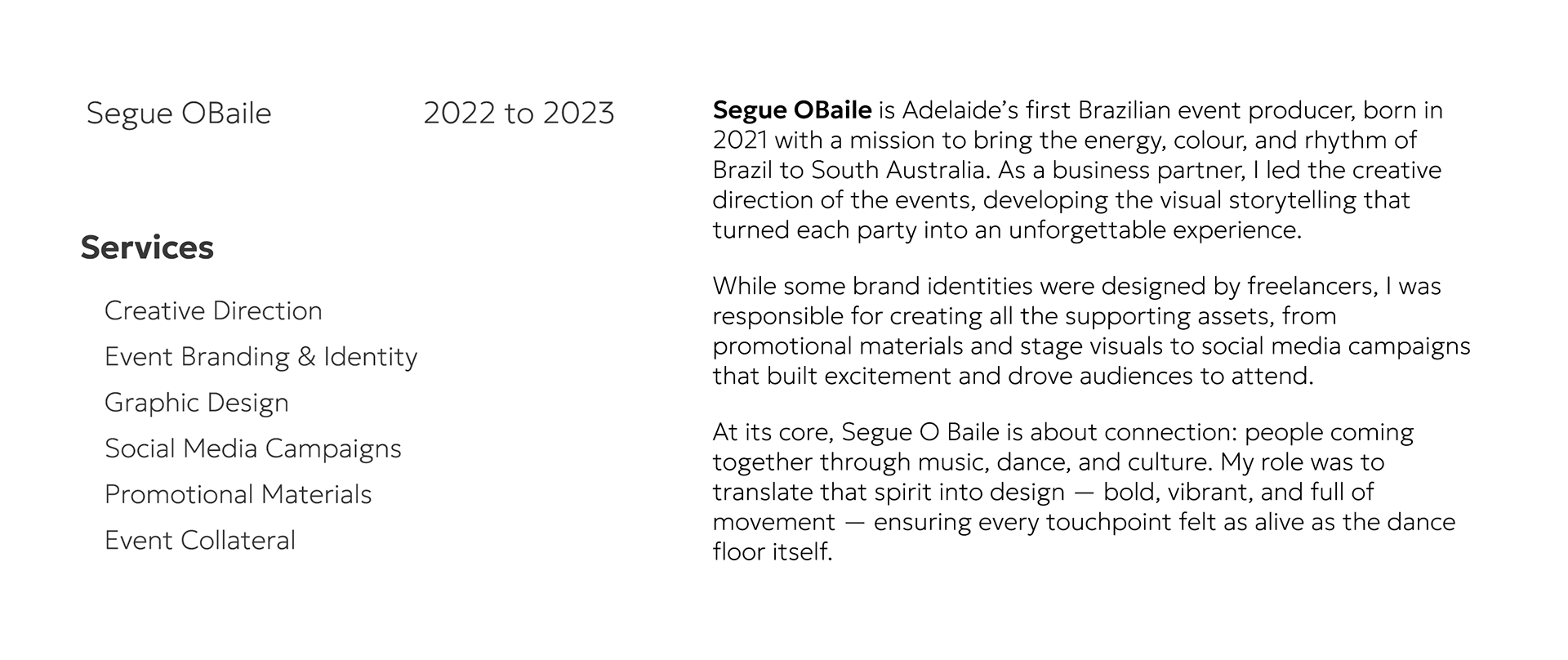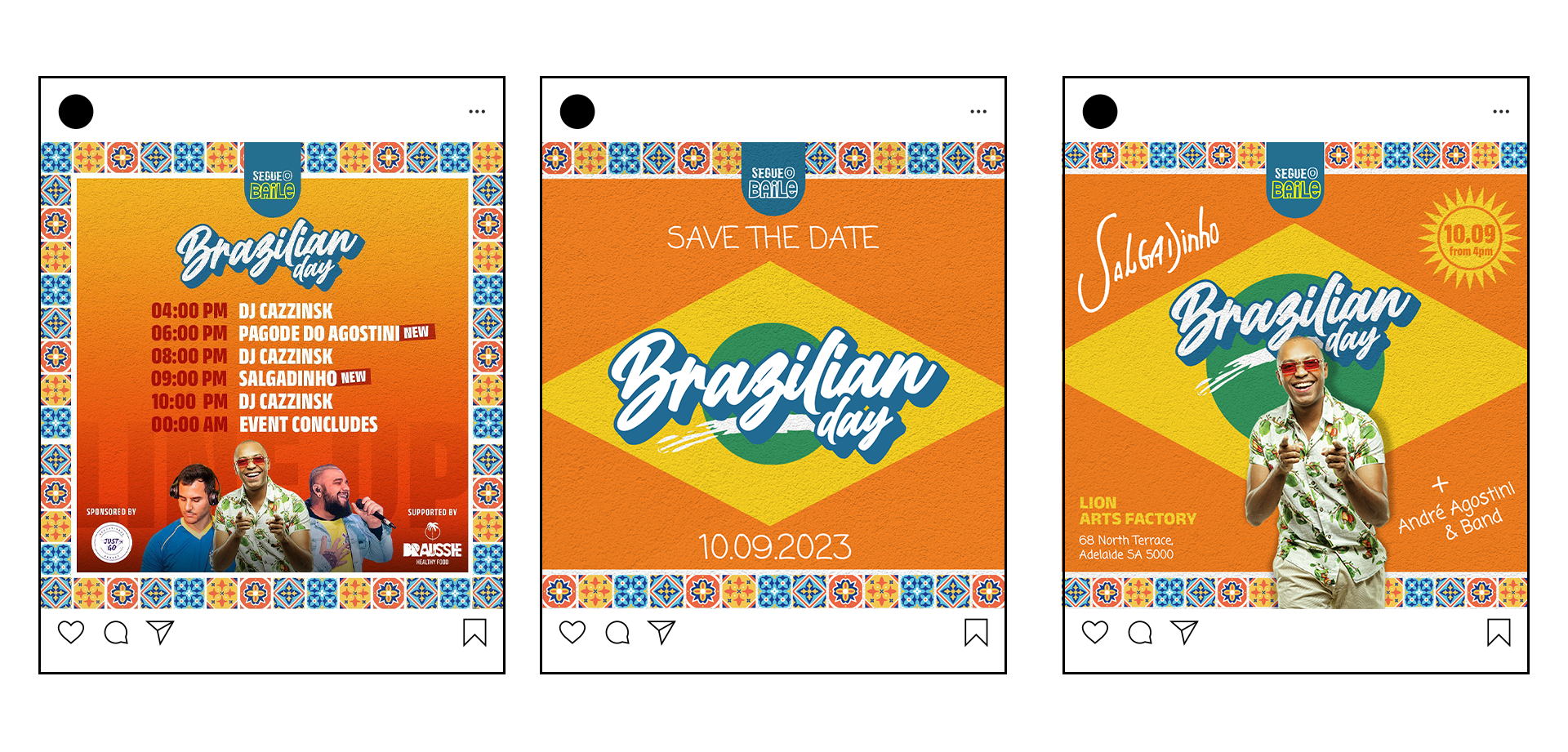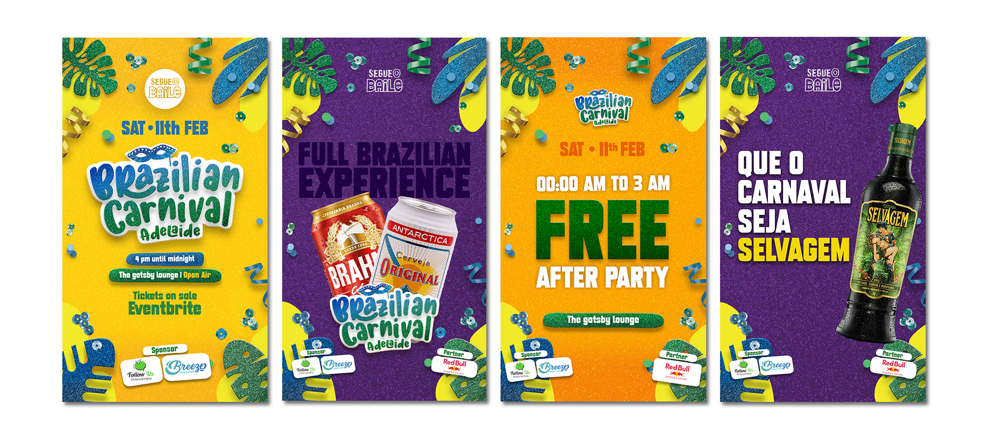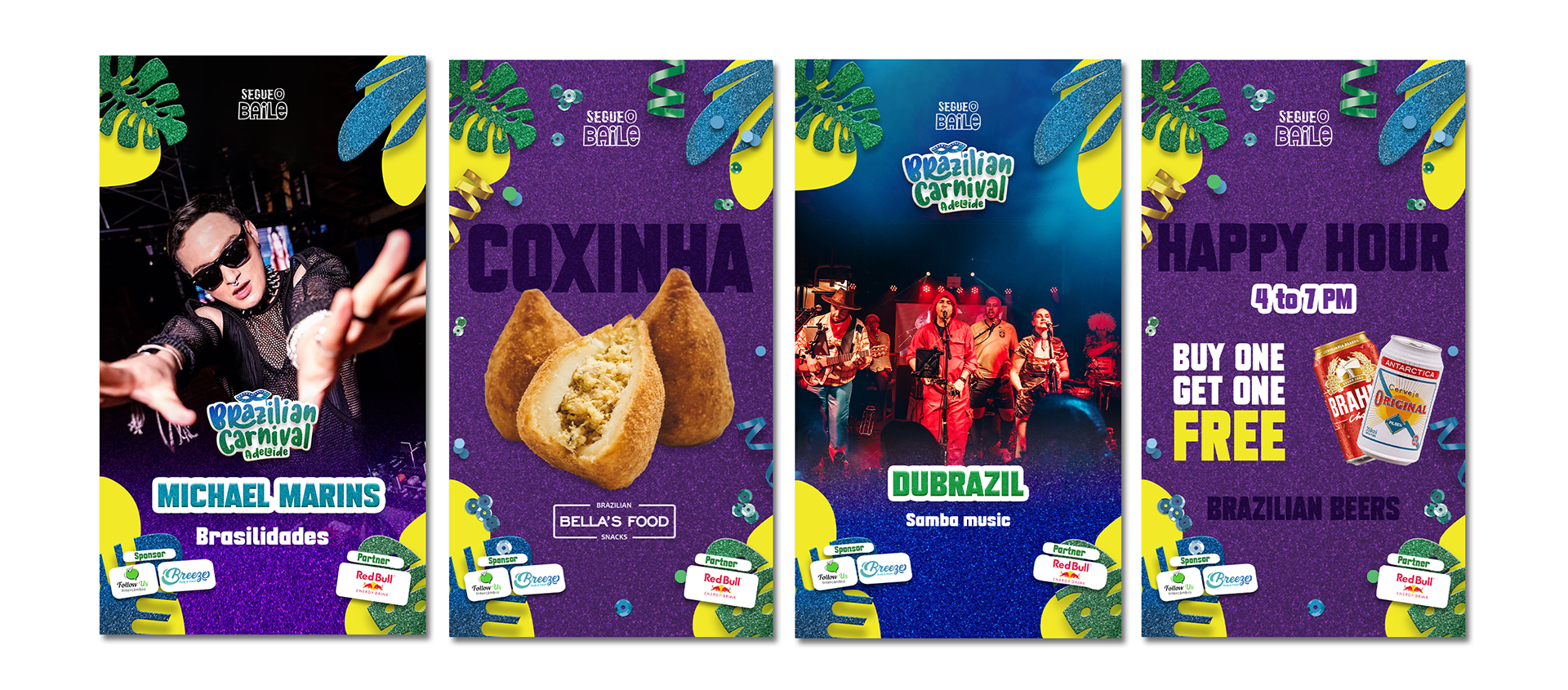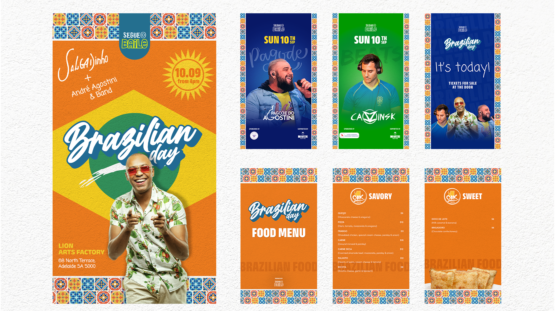 While another designer created the event’s brand identity, I was responsible for designing all assets, collateral, and supporting creatives. This included promotional campaigns, on-site materials, and video editing for social media content that you can see here and here, ensuring every touchpoint captured the vibrancy, energy, and authenticity of Brazilian culture.